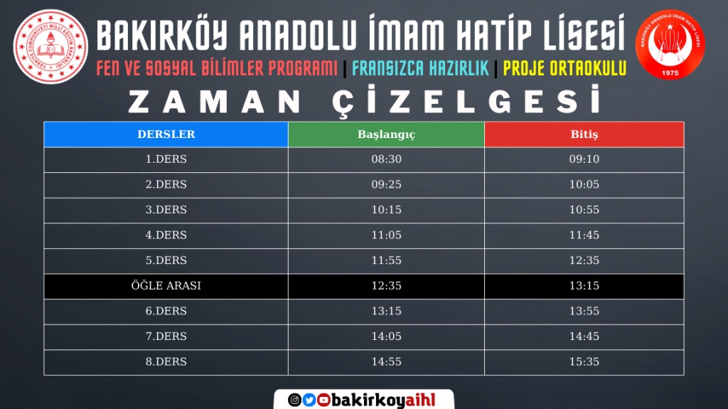 Okulumuzun zaman çizelgesi ekte sunulmuştur.